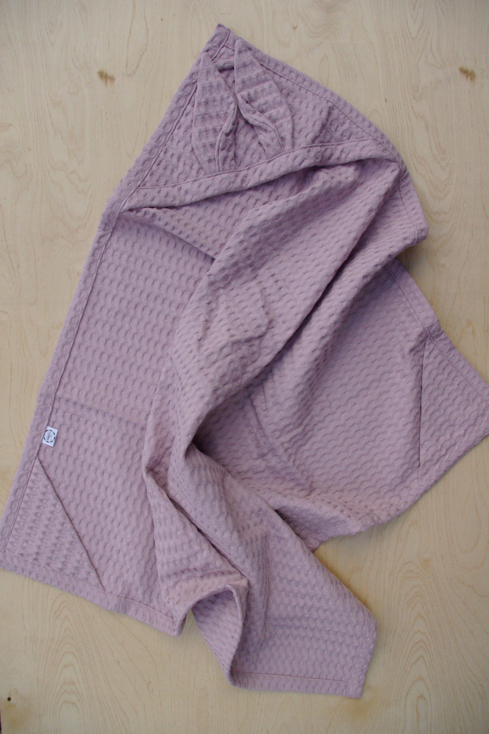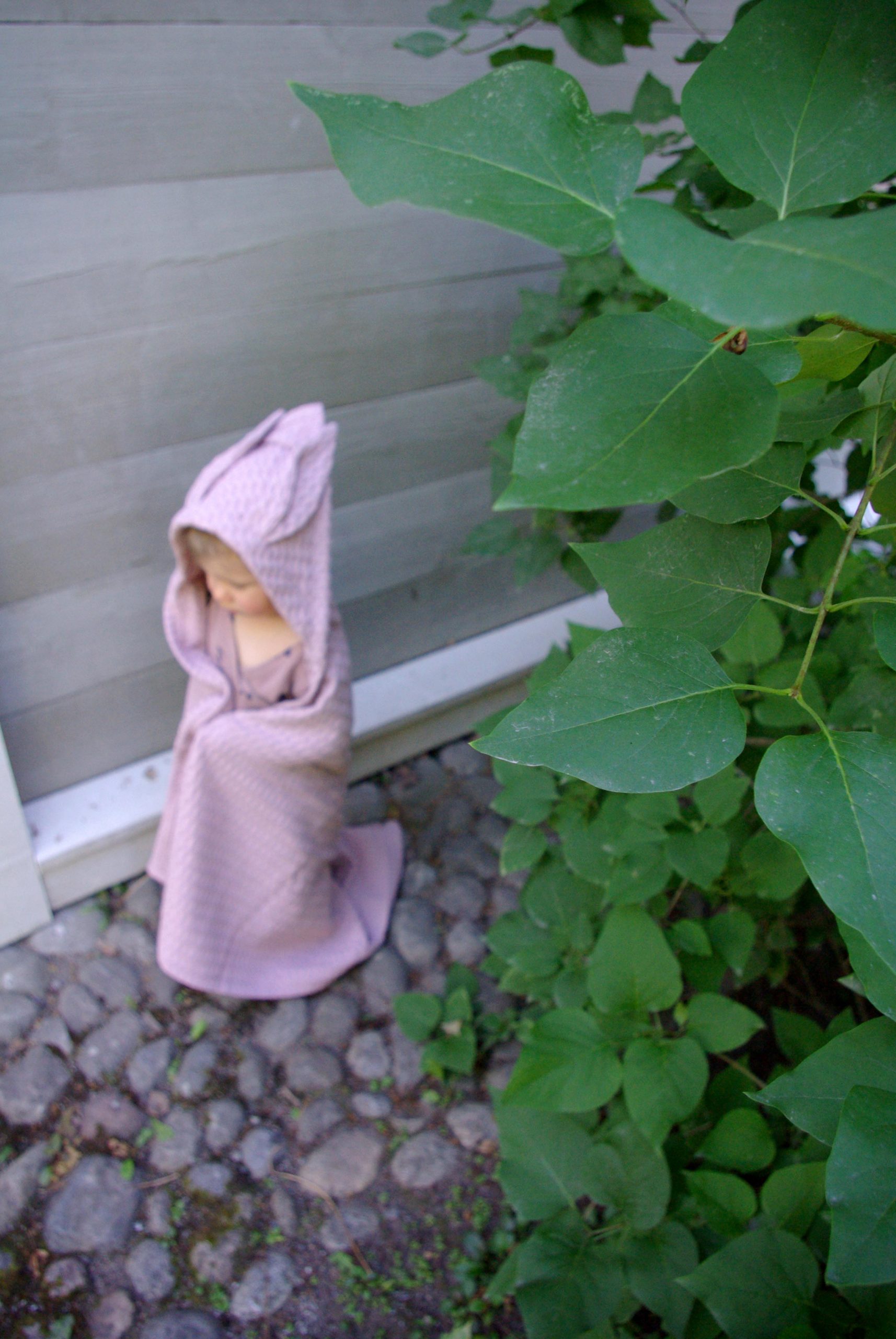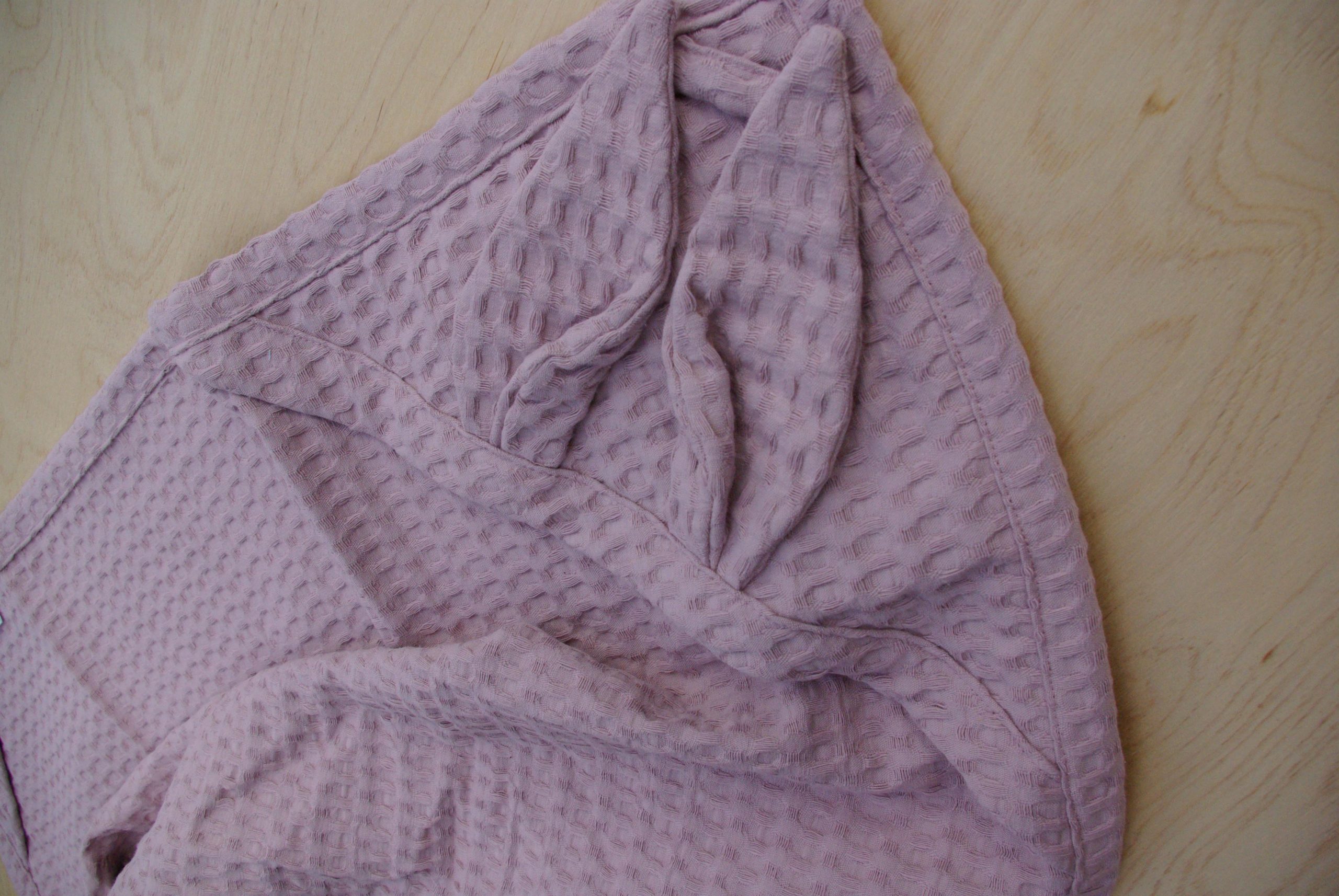 Lapsen huppupyyhe on valmistettu pehmeästä isokuvioisesta vohvelikankaasta ja sen hupussa on hurmaavat pupun korvat. Vohvelikankaan kennomainen rakenne on imukykyinen ja sen ominaisuudet paranevat pesujen ja käyttökertojen myötä. Pyyhe kuivuu nopeasti, joten vohvelipyyhe on erinomainen valinta myös reissupyyhkeeksi.